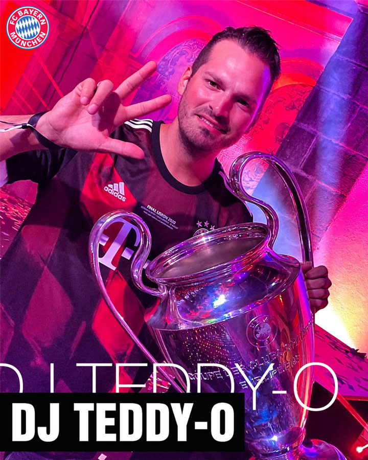 DJ Teddy-O hat auf der CHAMPIONS LEAGUE FINAL PARTY 2020 in Lissabon/Portugal für FC BAYERN MÜNCHEN aufgelegt. Nach dem Sieg gegen Paris St Germain hat das Bayern München Team unter allen offiziellen Corona Auflagen in einer exclusiven Location ihre Final-Party gefeiert. Mittendrin und die Musikalische Leitung bis in die frühen Morgenstunden hatte DJ Teddy-O.